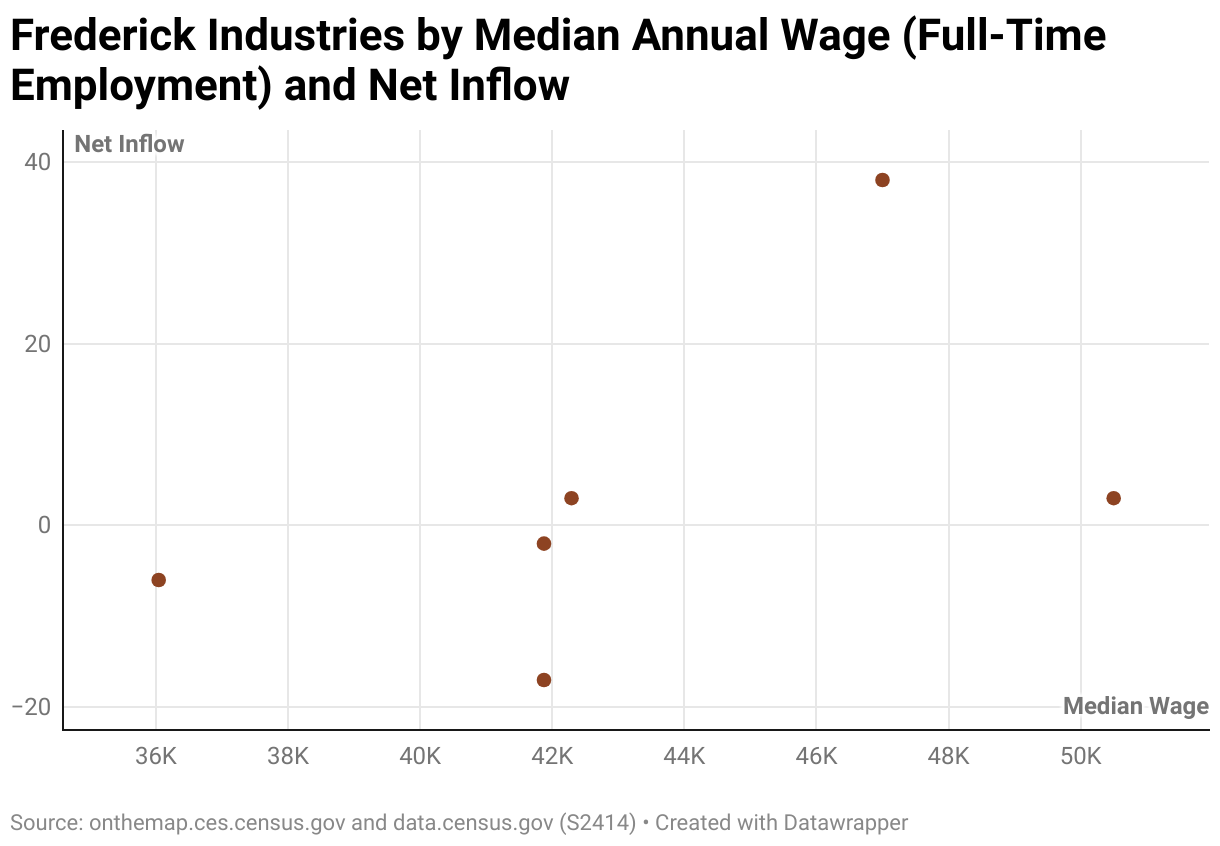Frederick Industries by Median Annual Wage (Full-Time Employment) and Net Inflow