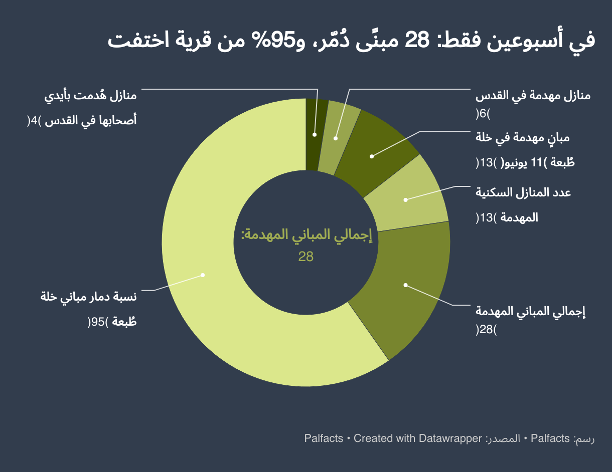 في أسبوعين فقط: 28 مبنًى دُمّر، و95% من قرية اختفت