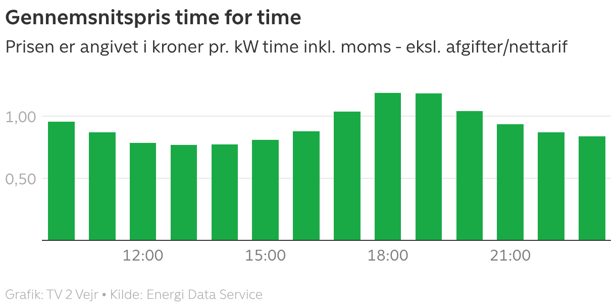Prisen er angivet i kroner pr. kW time inkl. moms - eksl. afgifter/nettarif