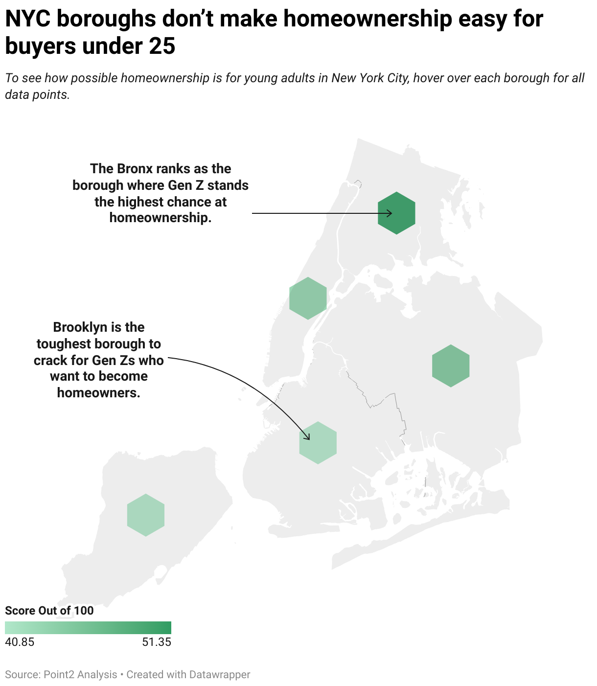 To see how possible homeownership is for young adults in New York City, hover over each borough for all data points.