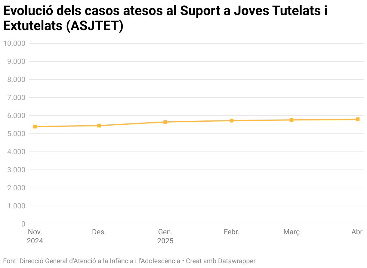 Evolució dels casos atesos al Suport a Joves Tutelats i Extutelats (ASJTET)