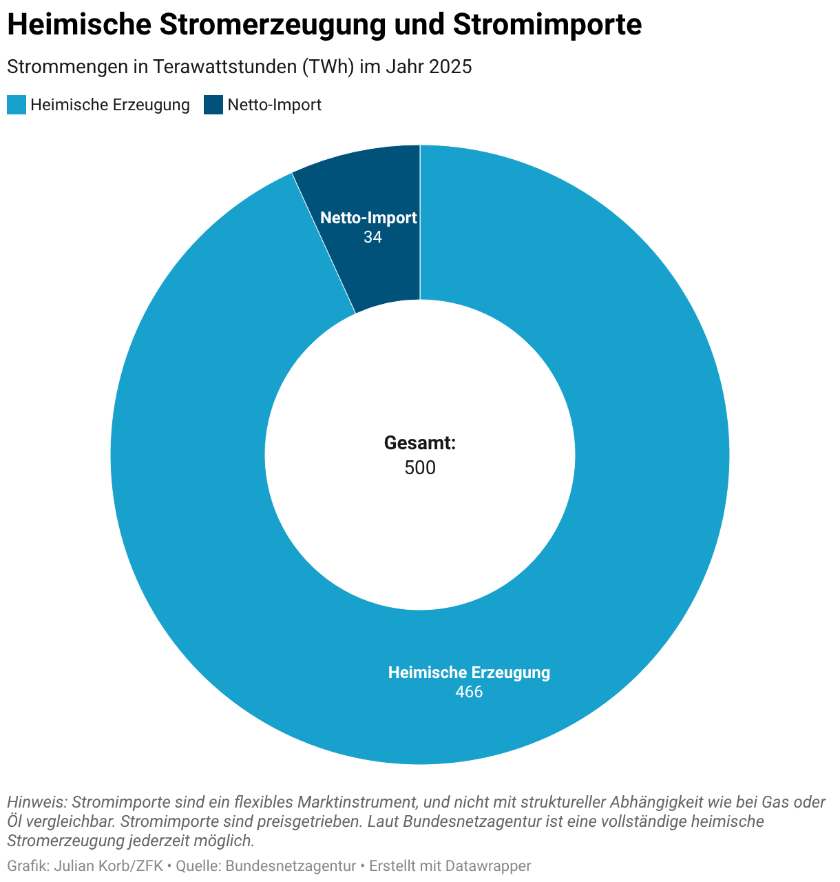 Strommengen in Terawattstunden (TWh) im Jahr 2025