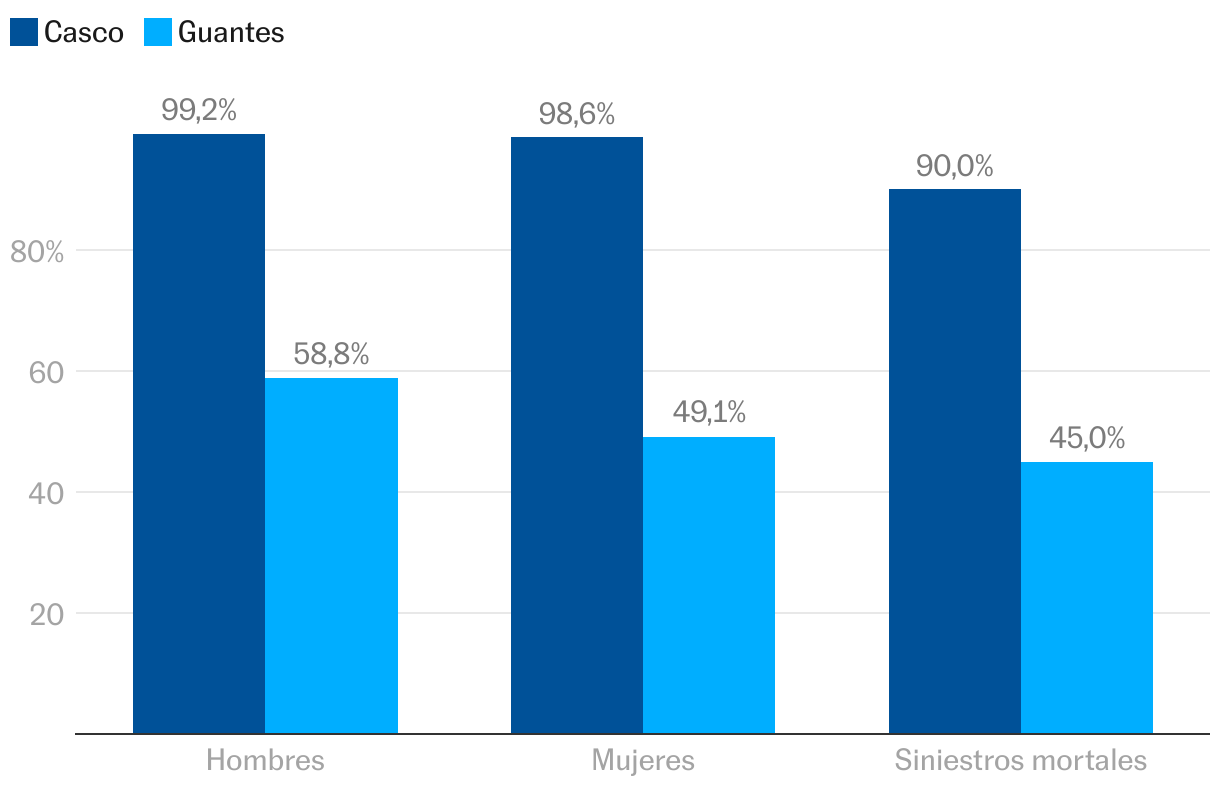 Uso de los elementos de protección básicos entre los usuarios de motocicletas y ciclomotores.