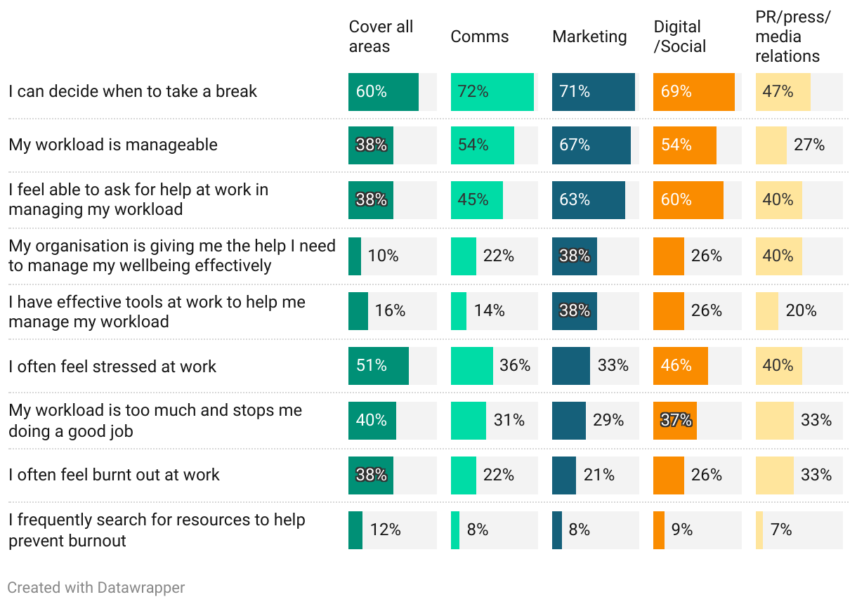 Which of the following applies to you when it comes to managing your workload (by specialisation)?