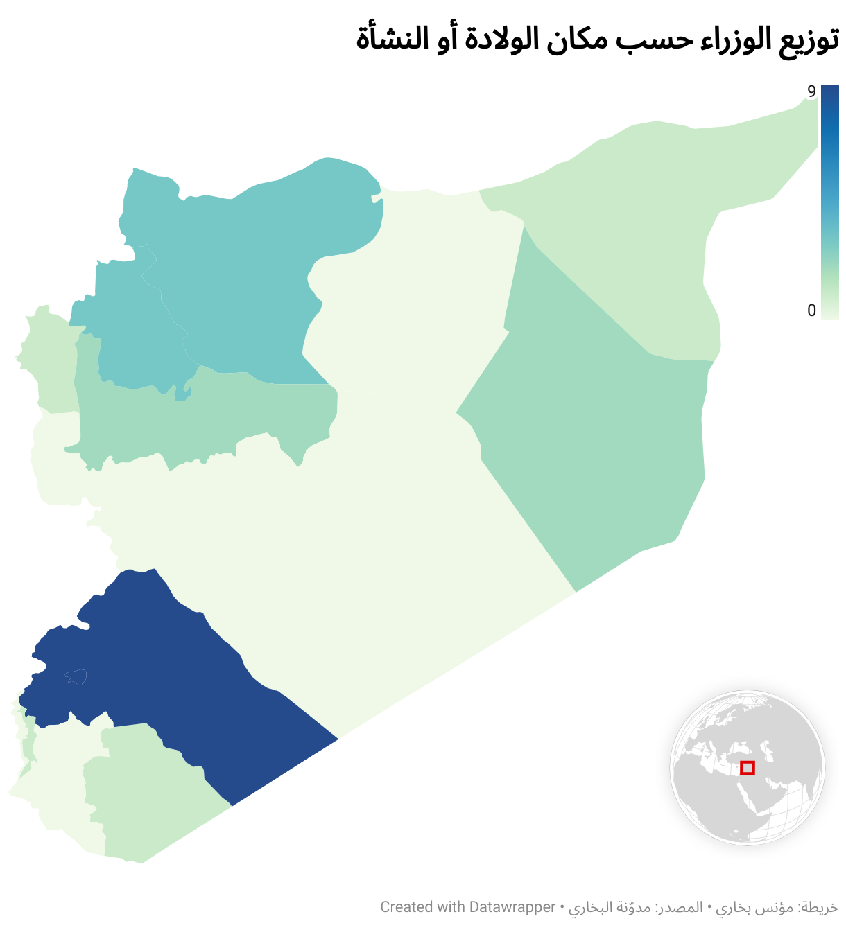 توزيع الوزراء حسب مكان الولادة أو النشأة