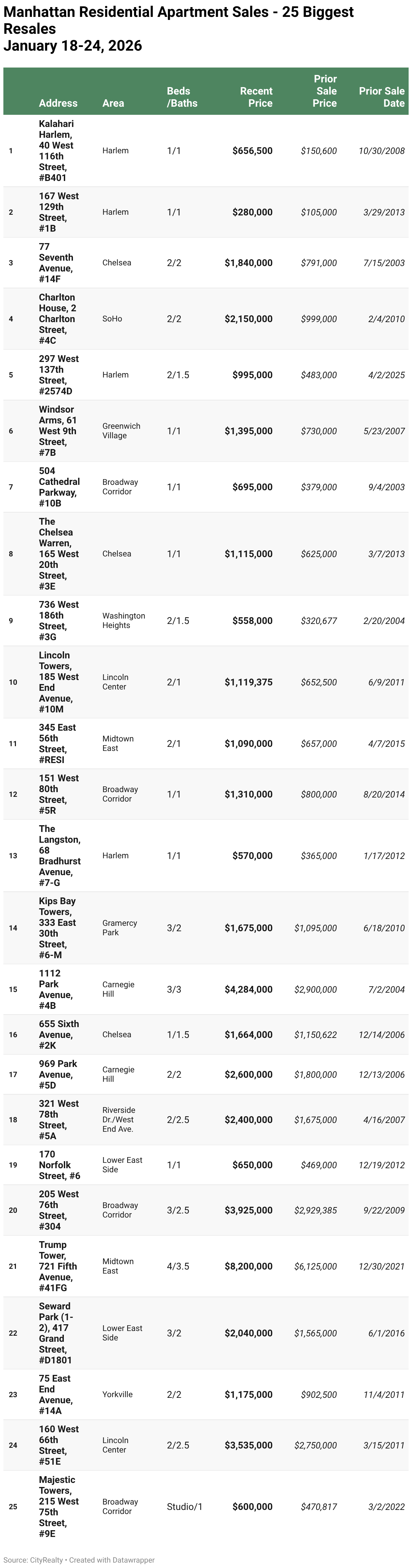 Manhattan Residential Apartment Sales - 25 Biggest Resales