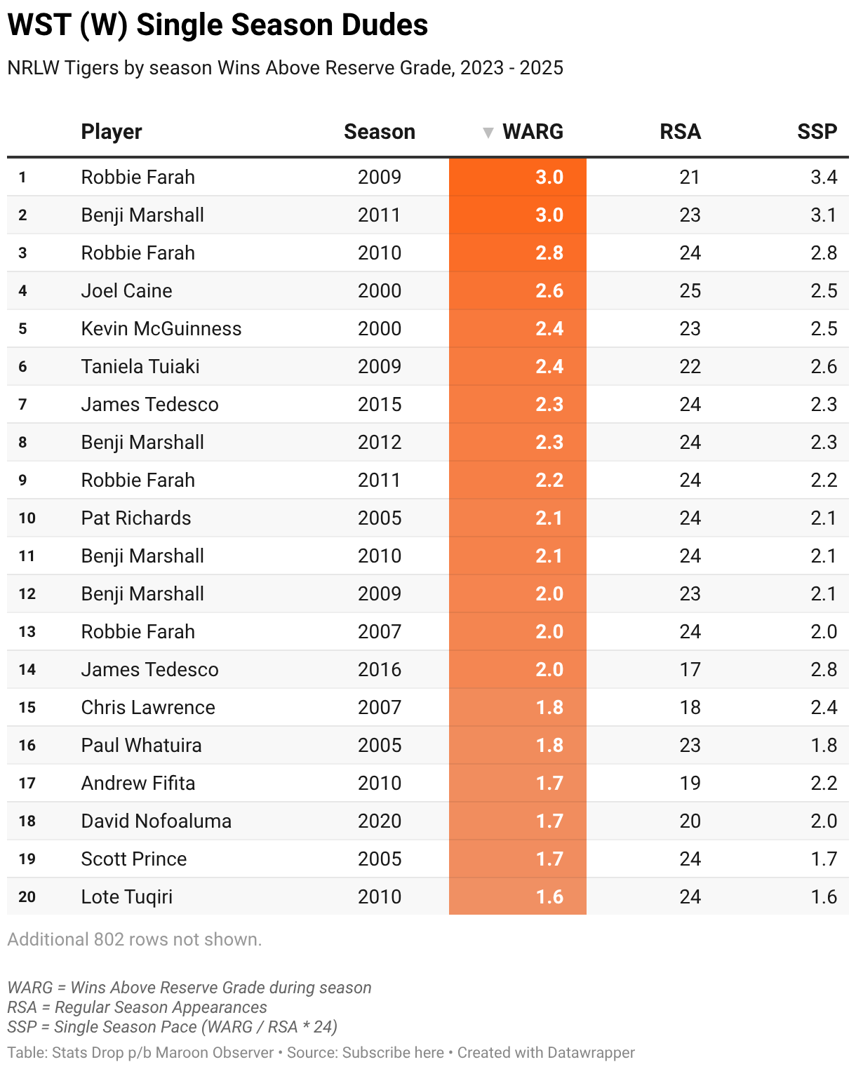 NRLW Tigers by season Wins Above Reserve Grade, 2023 - 2025