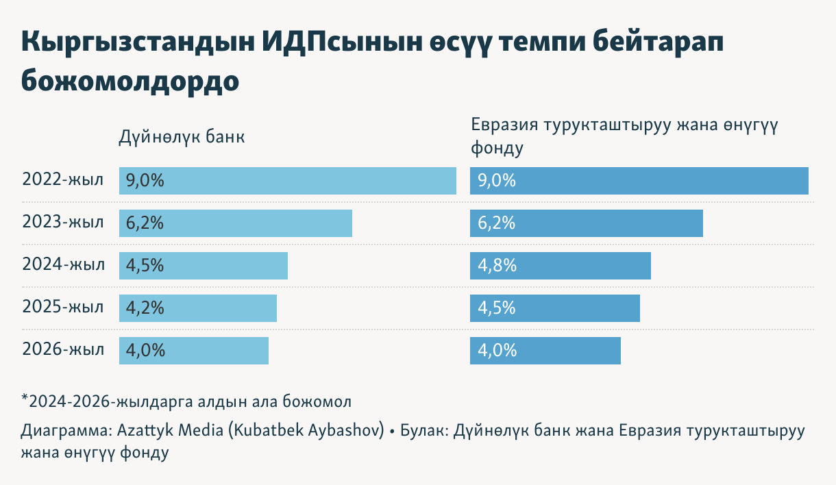 Кыргызстандын ИДПсынын өсүү темпи бейтарап божомолдордо