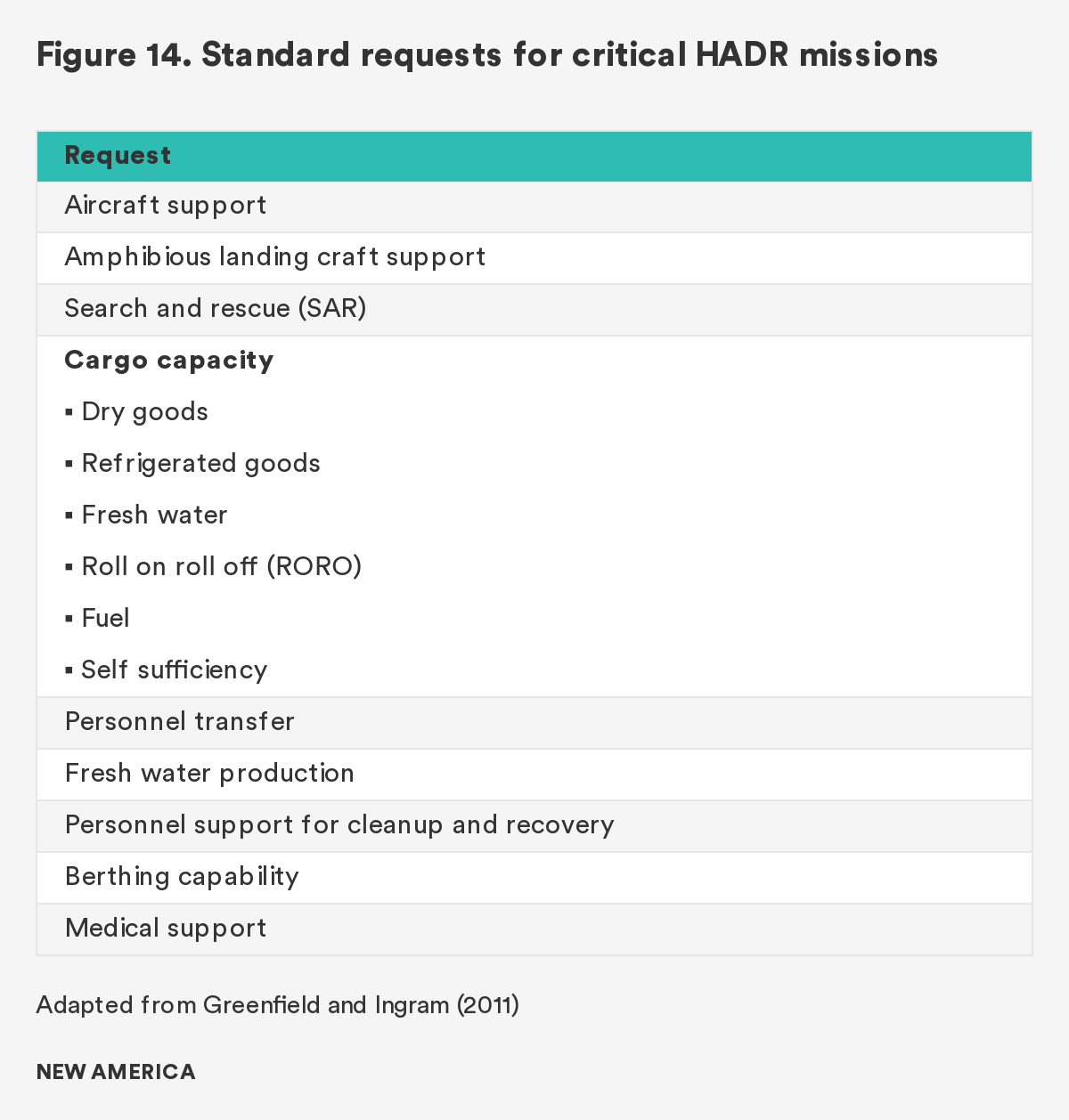 Figure 14. Standard requests for critical HADR missions