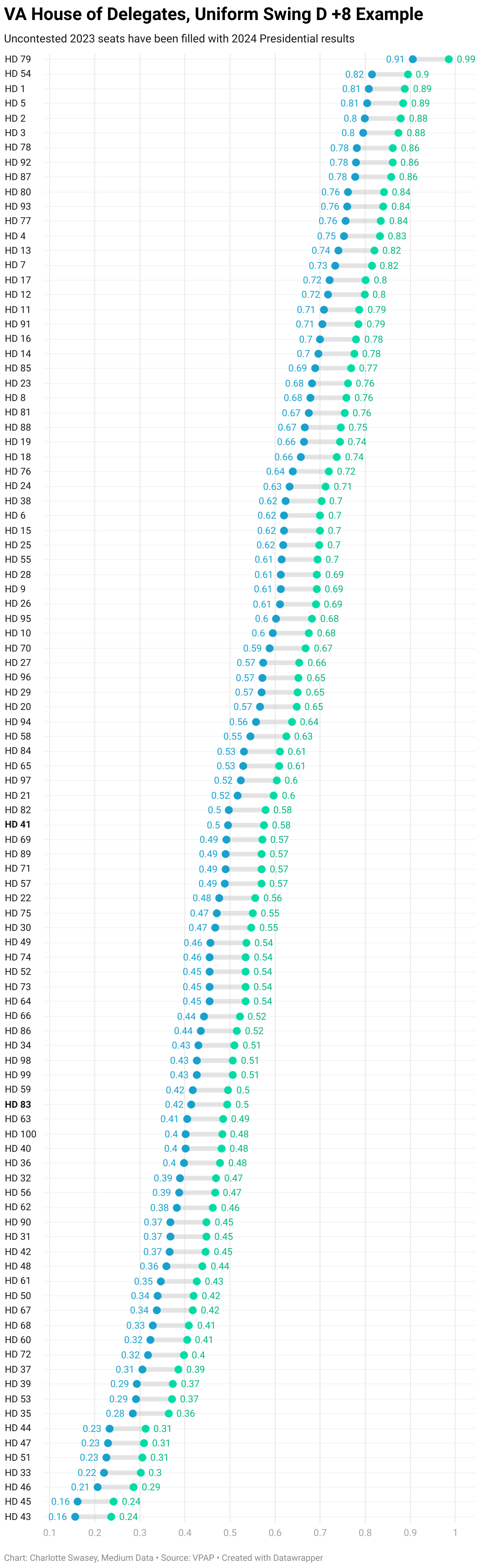 Uncontested 2023 seats have been filled with 2024 Presidential results