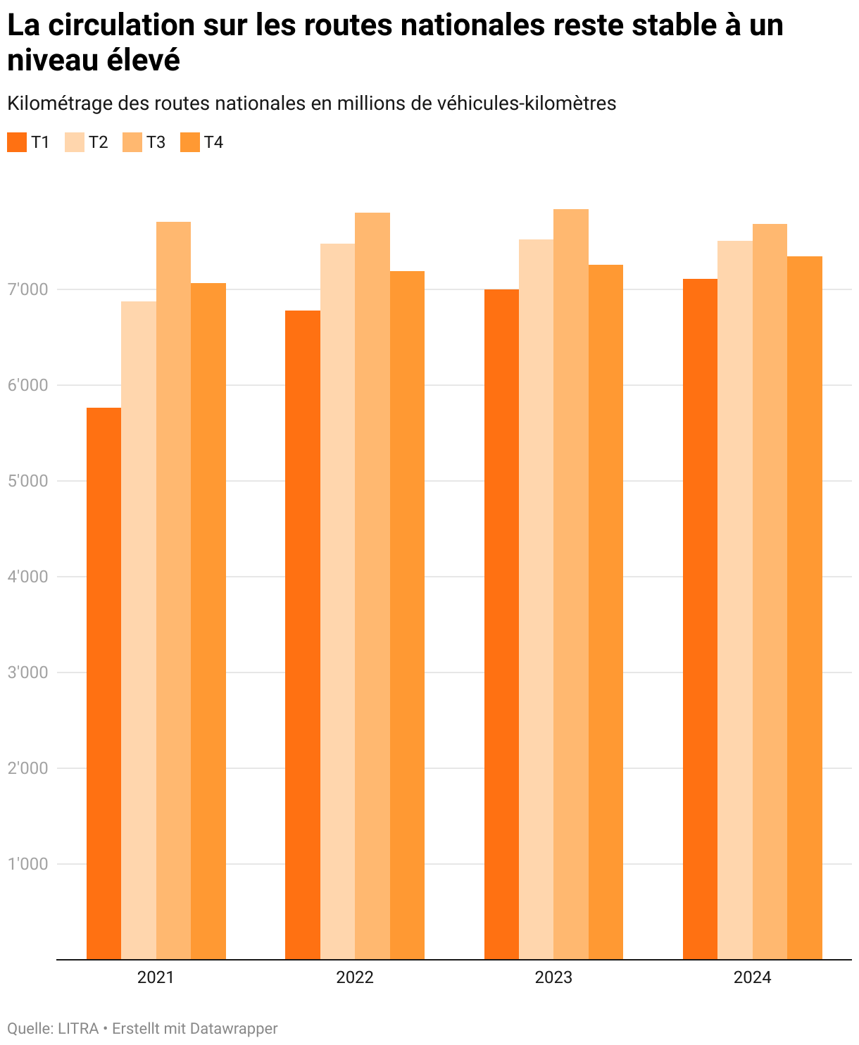 Kilométrage des routes nationales en millions de véhicules-kilomètres