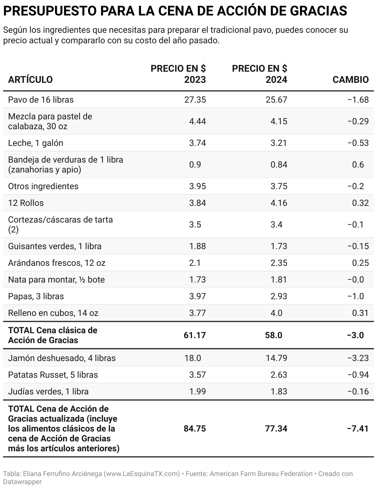 Según los ingredientes que necesitas para preparar el tradicional pavo, puedes conocer su precio actual y compararlo con su costo del año pasado.