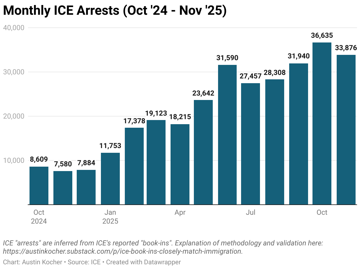 Monthly ICE Arrests (Oct '24 - Nov '25)