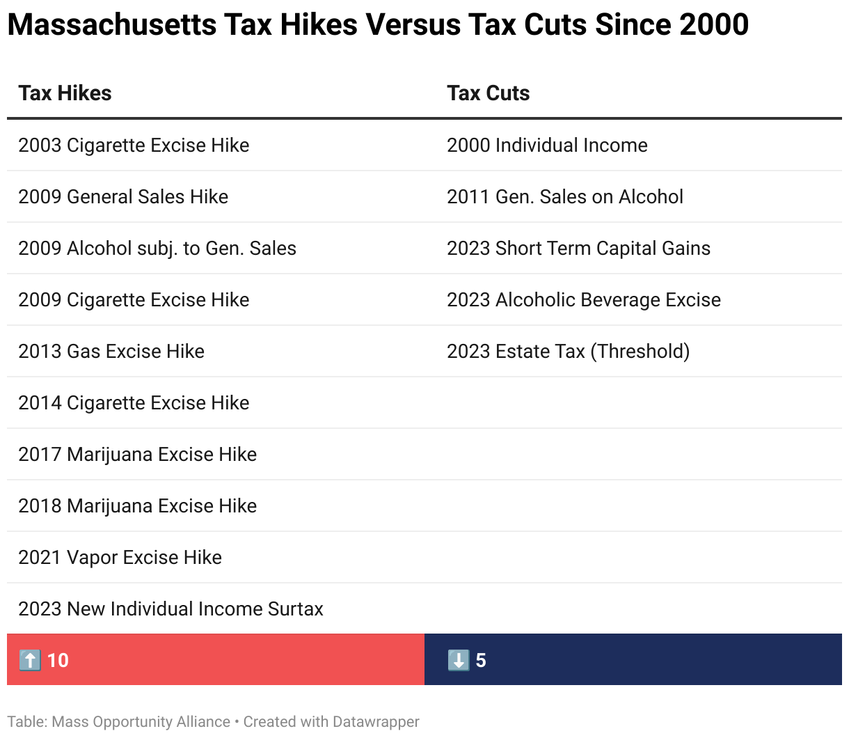 Massachusetts Tax Hikes Versus Tax Cuts Since 2000
