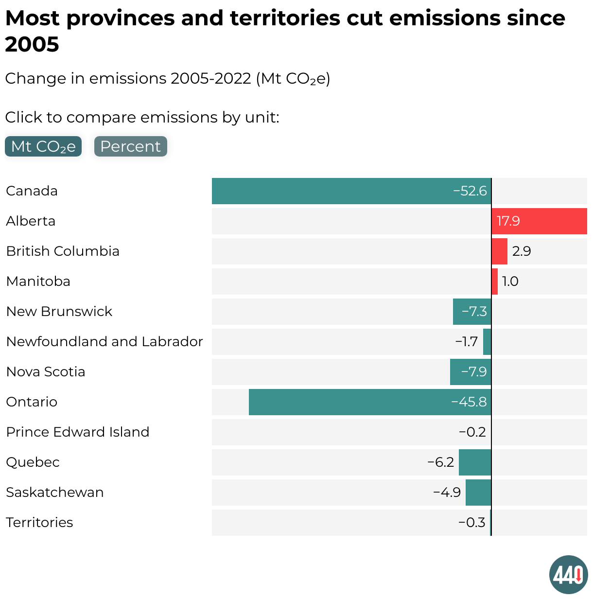 Change in emissions 2005-2022 (Mt CO₂e) Click to compare emissions by unit: Mt CO₂e Percent