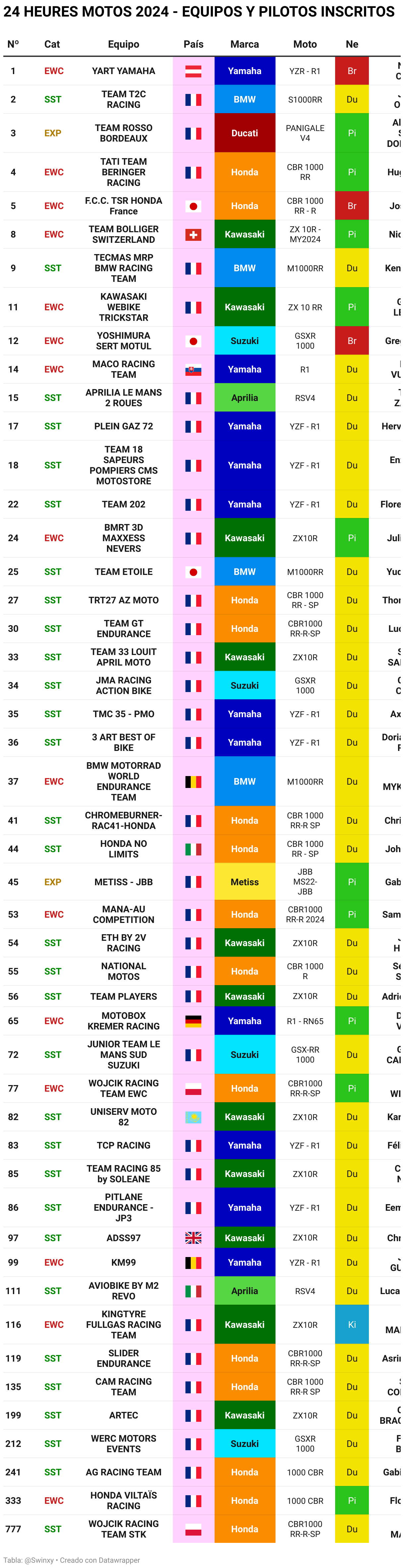 24 HEURES MOTOS 2024 - EQUIPOS Y PILOTOS INSCRITOS