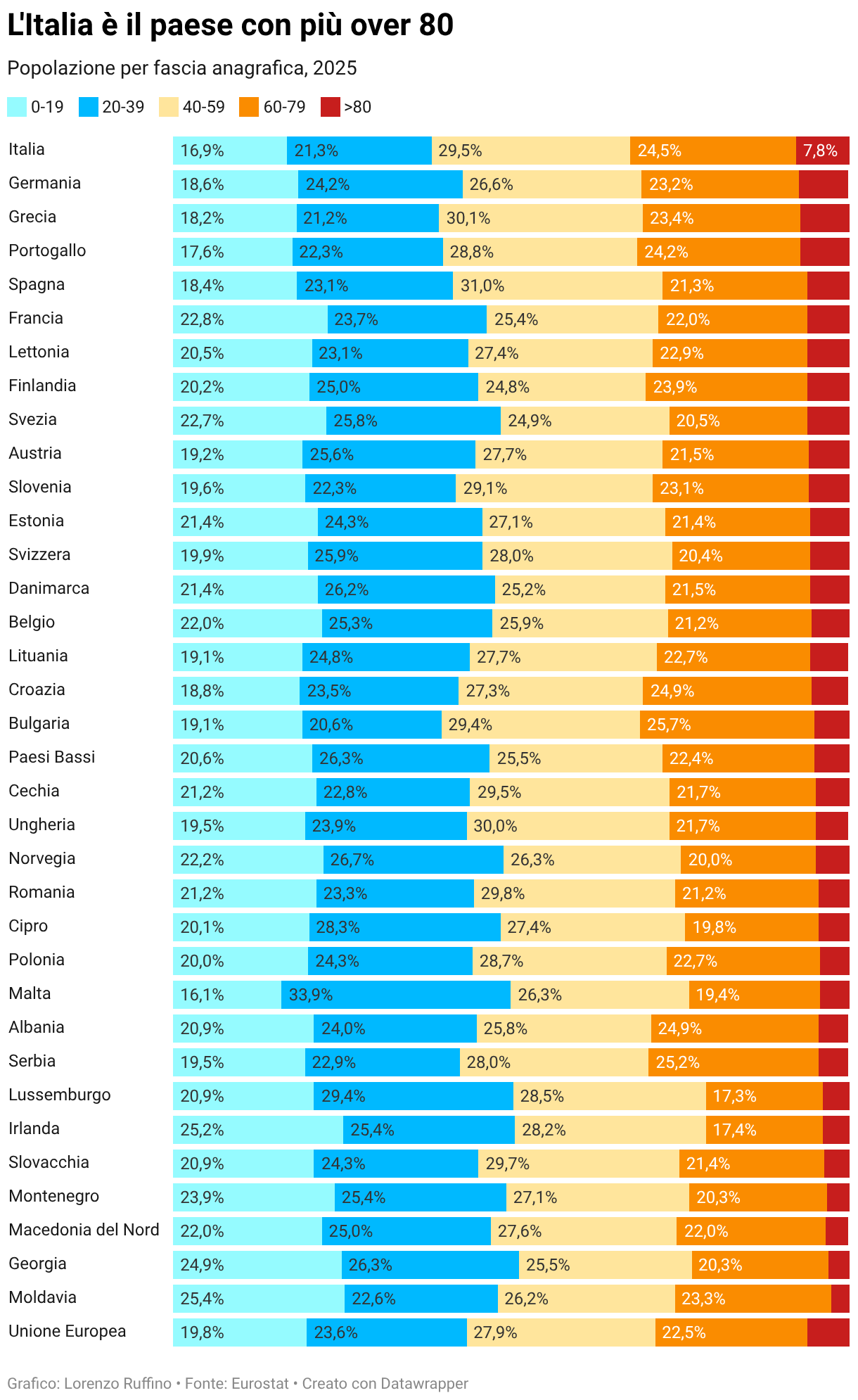 Popolazione per fascia anagrafica, 2025