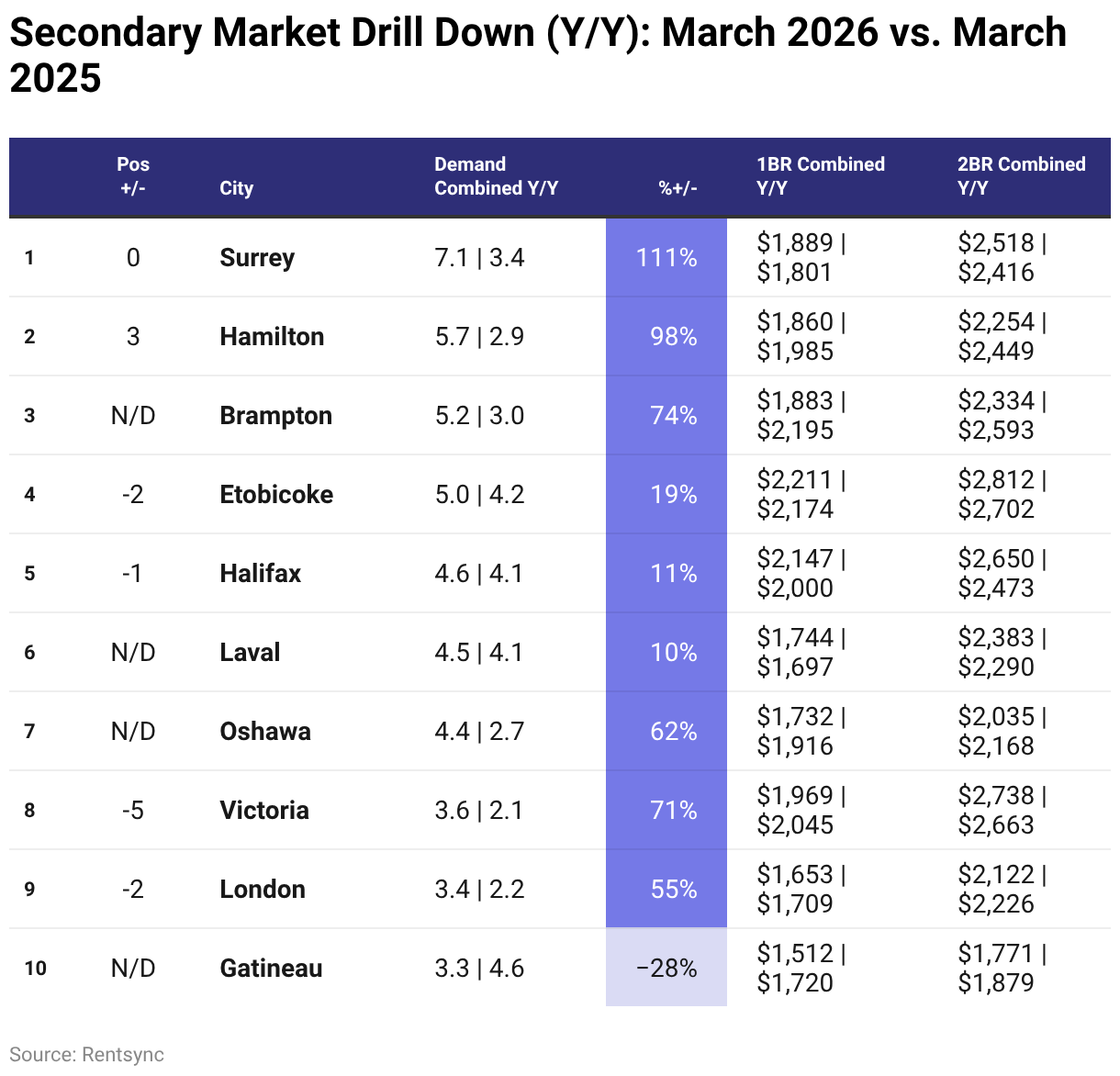 Secondary Market Drill Down (Y/Y): March 2026 vs. March 2025