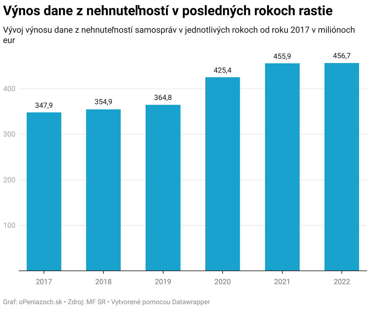 Vývoj výnosu dane z nehnuteľností samospráv v jednotlivých rokoch od roku 2017 v miliónoch eur