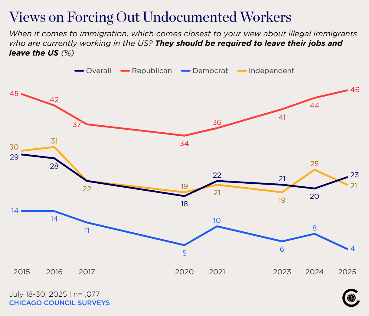 When it comes to immigration, which comes closest to your view about illegal immigrants who are currently working in the US? They should be required to leave their jobs and leave the US (%)