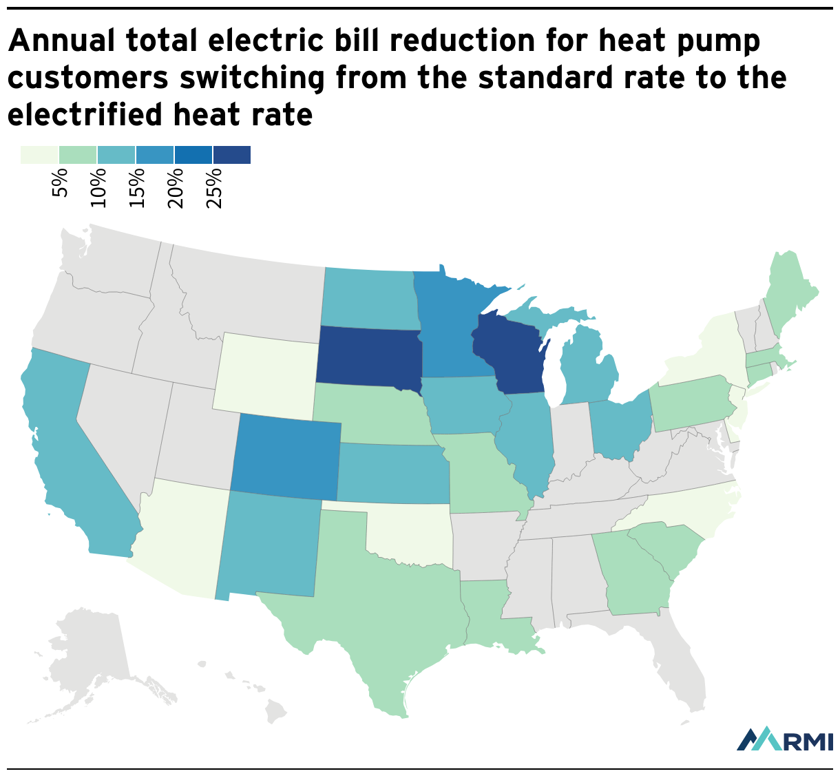 Annual total electric bill reduction for heat pump customers switching from the standard rate to the electrified heat rate