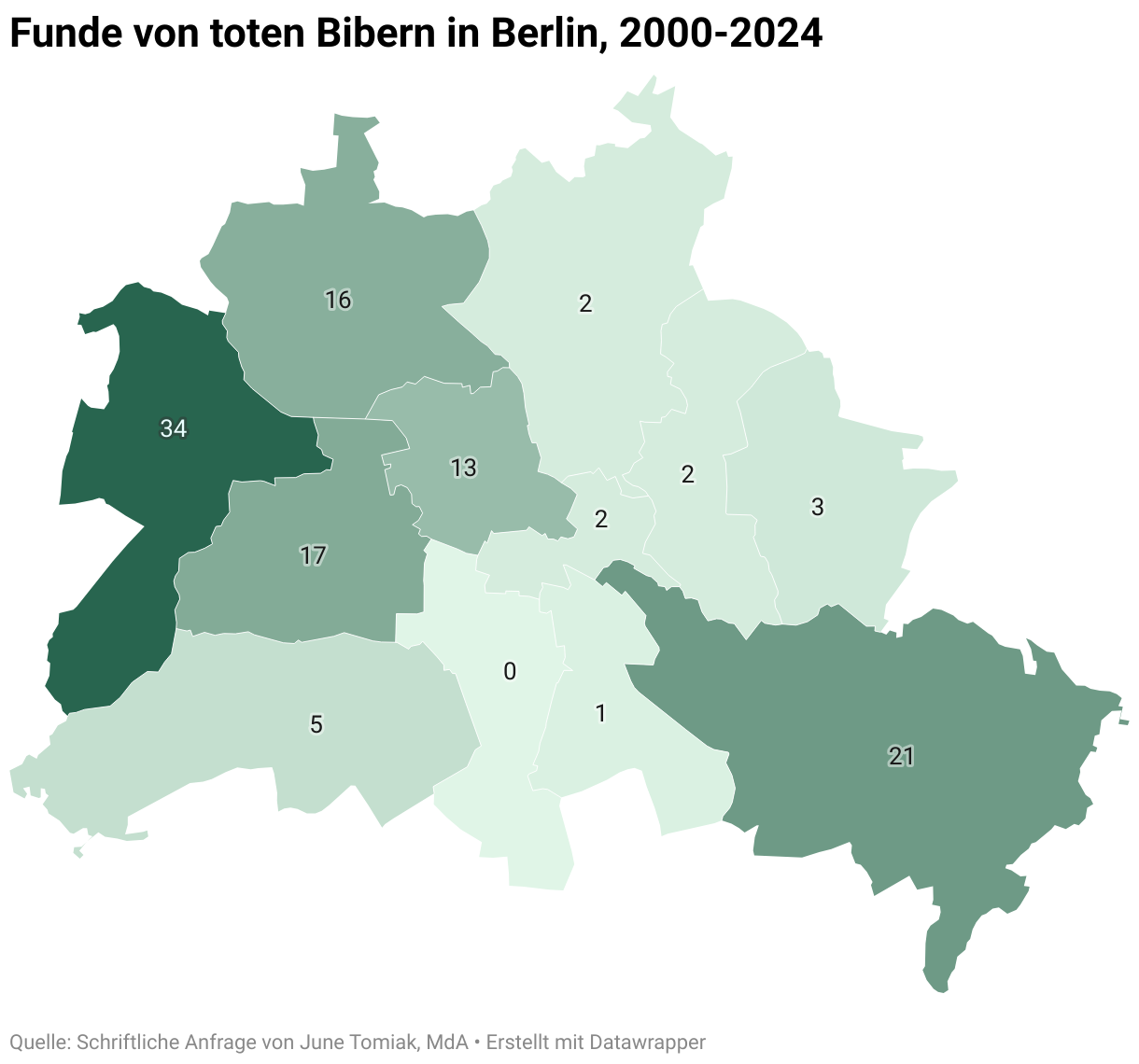Funde von toten Bibern in Berlin, 2000-2024
