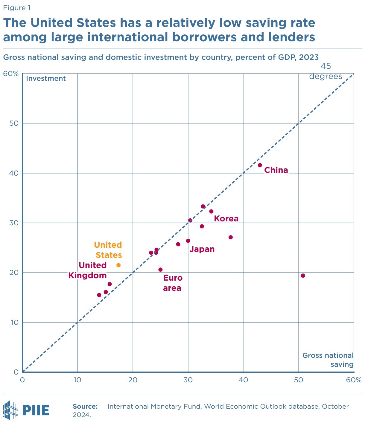 Gross national saving and domestic investment by country, percent of GDP, 2023