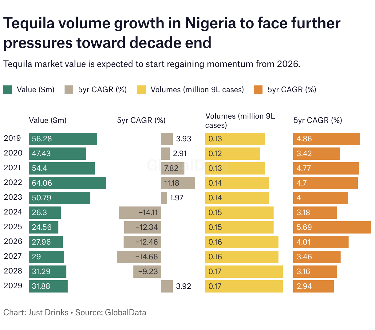 Tequila market value is expected to start regaining momentum from 2026.
