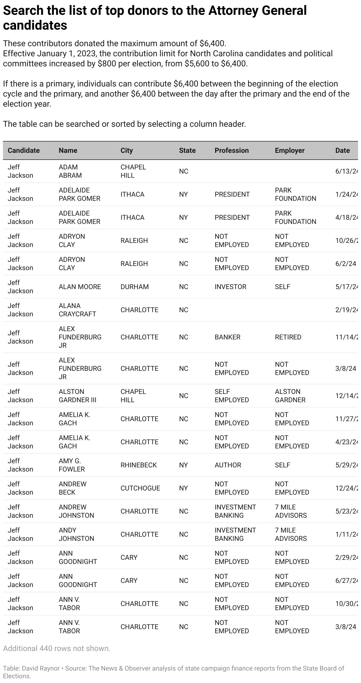 Effective January 1, 2023, the contribution limit for North Carolina candidates and political committees increased by $800 per election, from $5,600 to $6,400.