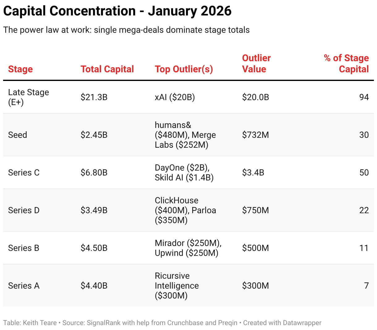 The power law at work: single mega-deals dominate stage totals