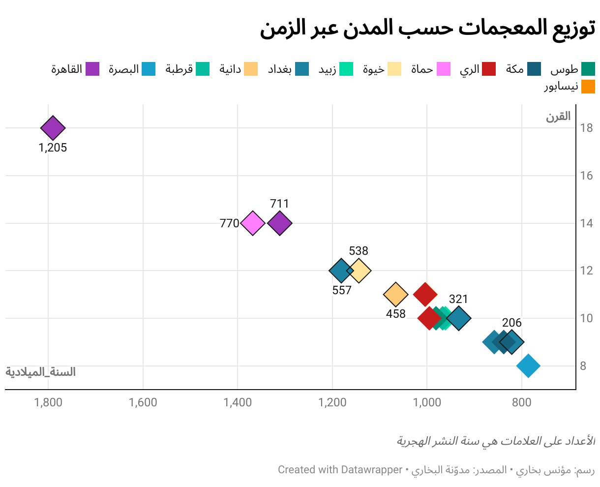 توزيع المعجمات حسب المدن عبر الزمن