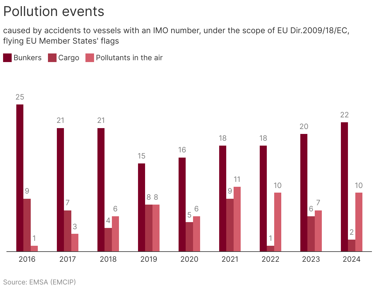 caused by accidents to vessels with an IMO number, under the scope of EU Dir.2009/18/EC, flying EU Member States' flags