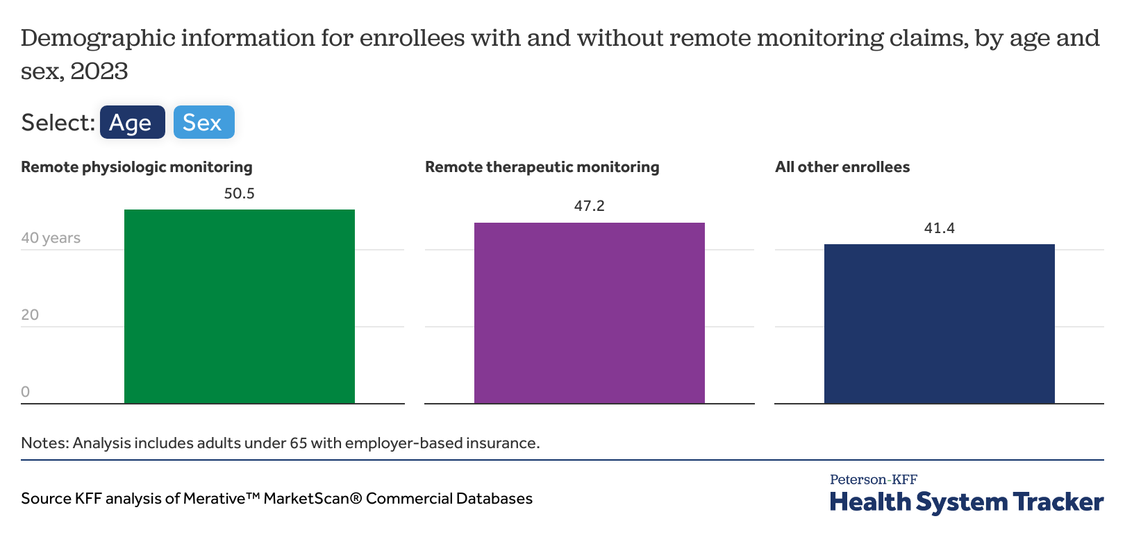 Demographic information for enrollees with and without remote monitoring claims, by age and sex, 2023