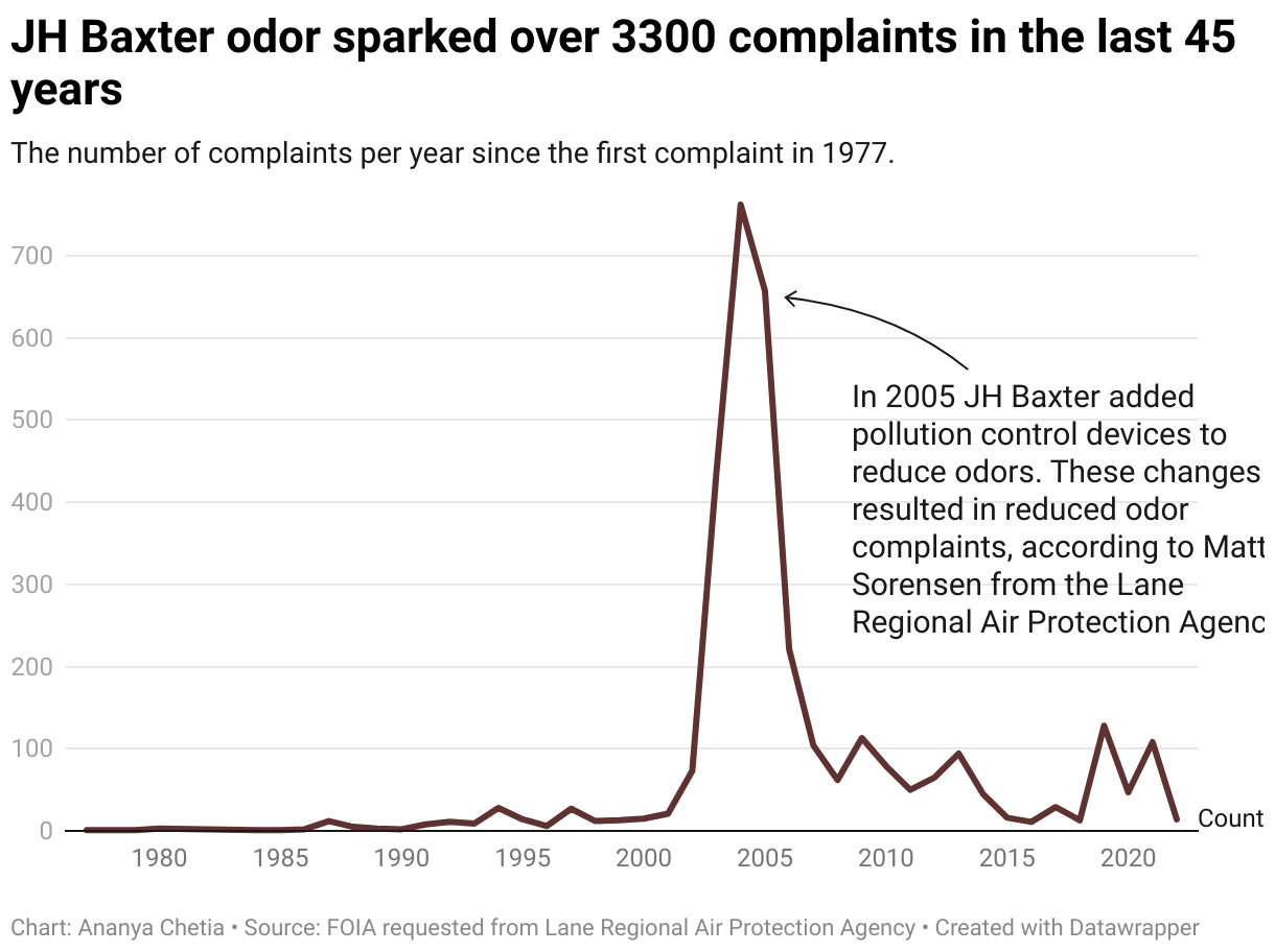 The number of complaints per year since the first complaint in 1977.