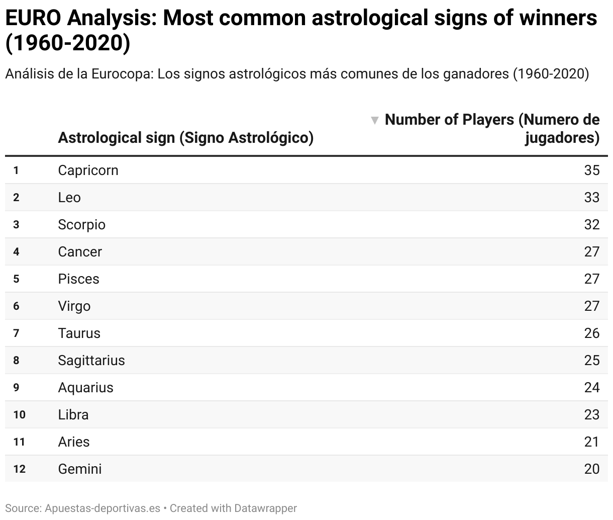 Análisis de la Eurocopa: Los signos astrológicos más comunes de los ganadores (1960-2020)
