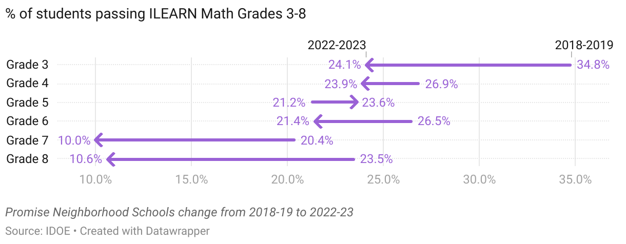 % of students passing ILEARN Math Grades 3-8