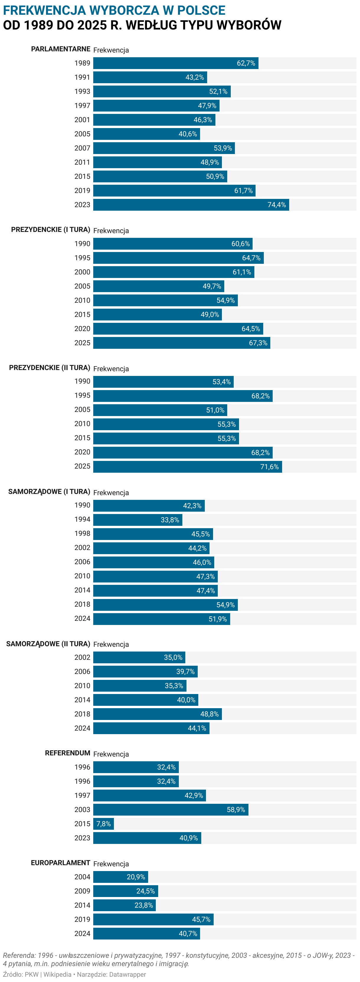 OD 1989 DO 2025 R. WEDŁUG TYPU WYBORÓW