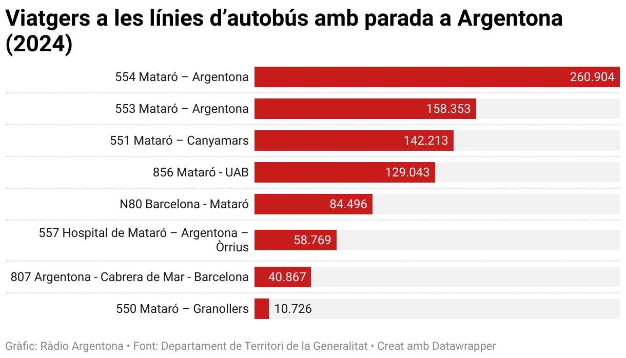 Viatgers a les línies d’autobús amb parada a Argentona (2024)
