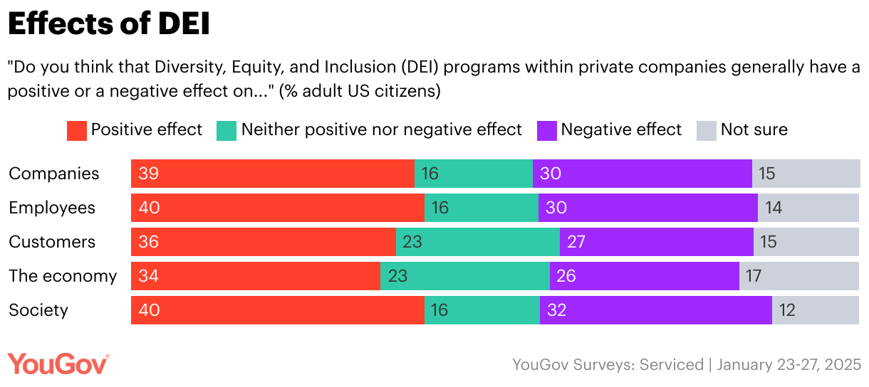 "Do you think that Diversity, Equity, and Inclusion (DEI) programs within private companies generally have a positive or a negative effect on..." (% adult US citizens)