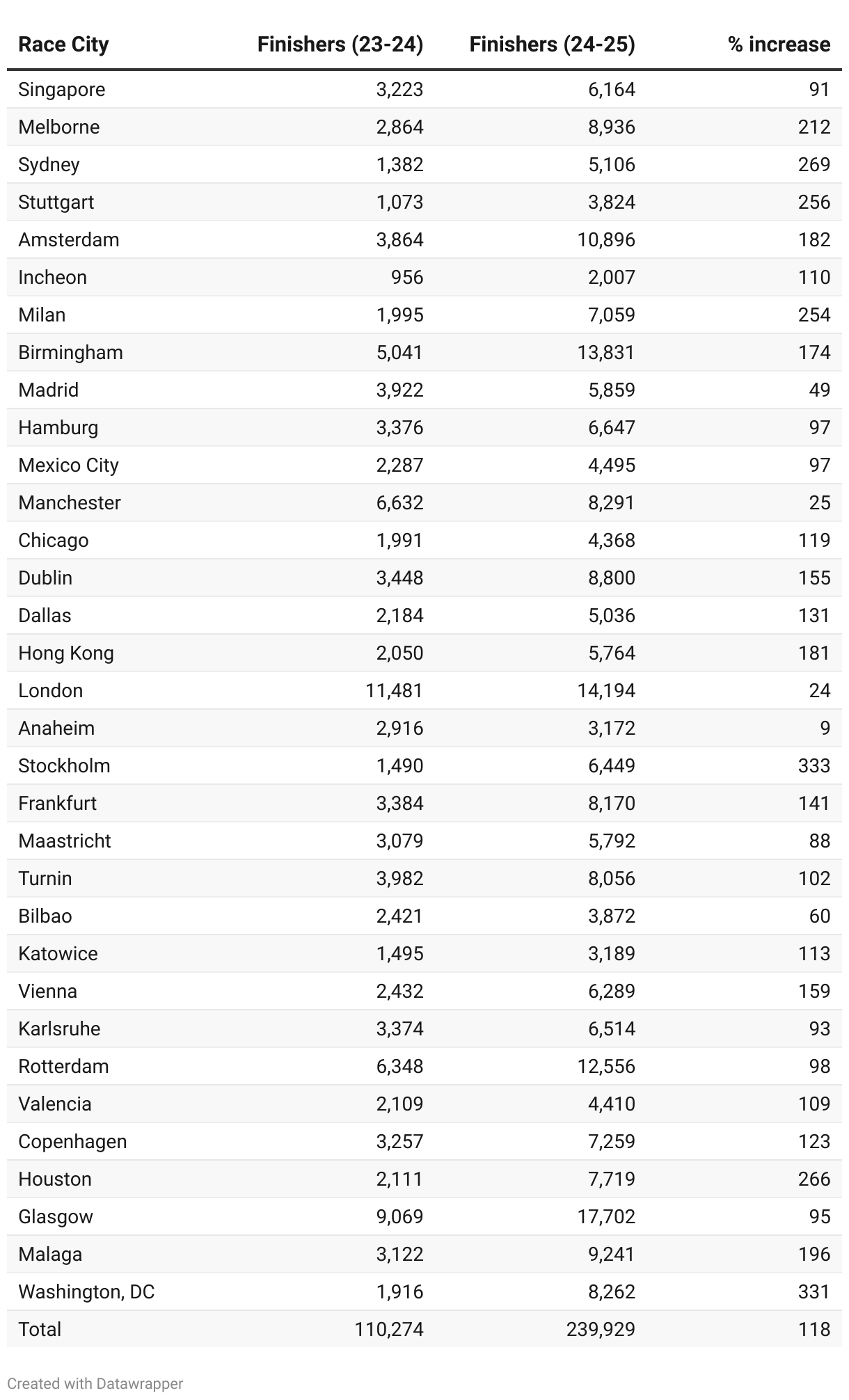 A look at the growth in cities that hosted a Hyrox in the 2023-24 Season and the 2024-25 Season