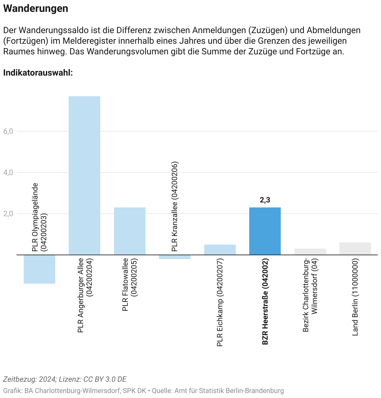 Der Wanderungssaldo ist die Differenz zwischen Anmeldungen (Zuzügen) und Abmeldungen (Fortzügen) im Melderegister innerhalb eines Jahres und über die Grenzen des jeweiligen Raumes hinweg. Das Wanderungsvolumen gibt die Summe der Zuzüge und Fortzüge an.