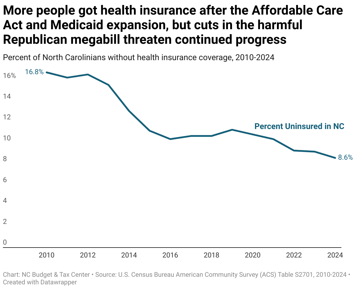Percent of North Carolinians without health insurance coverage, 2010-2024