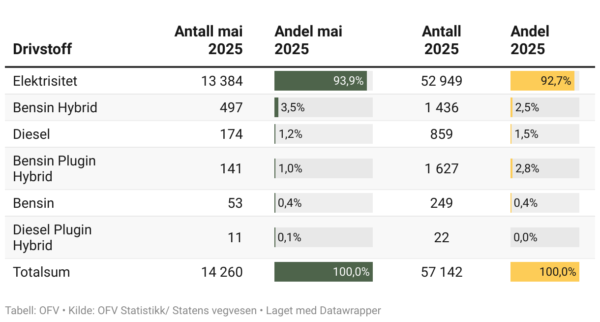 Grafikk: OFV Kilde: OFV Statistikk/ Statens vegvesen Last ned data Last ned bilde Laget med Datawrapper