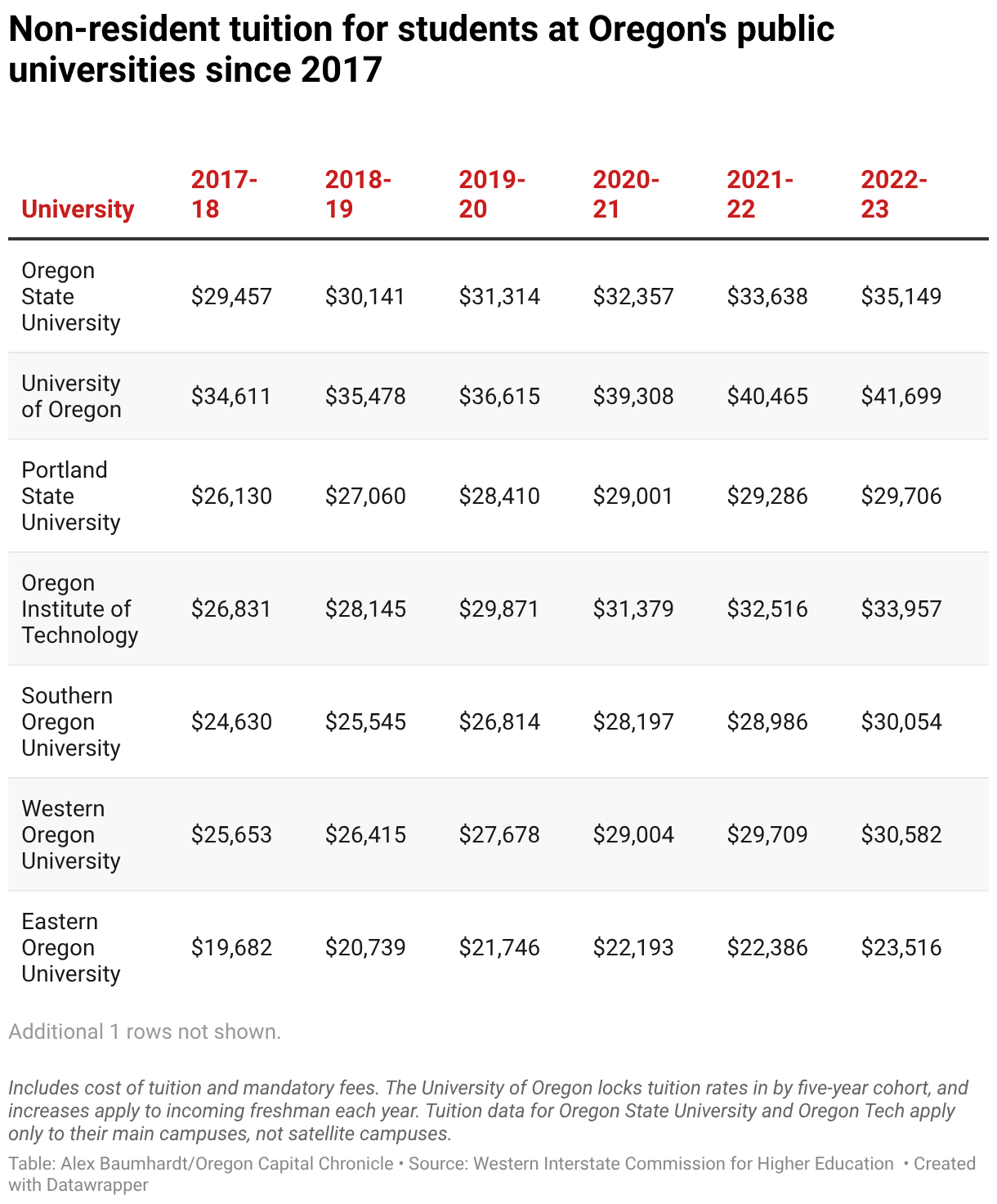 Non-resident tuition for students at Oregon's public universities since 2017