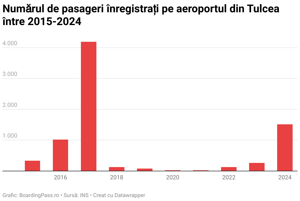 Numărul de pasageri înregistrați pe aeroportul din Tulcea între 2015-2024