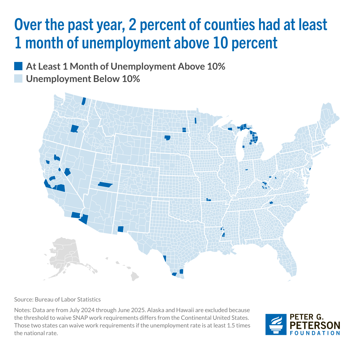 Over the past year, 2 percent of counties had at least 1 month of unemployment above 10 percent