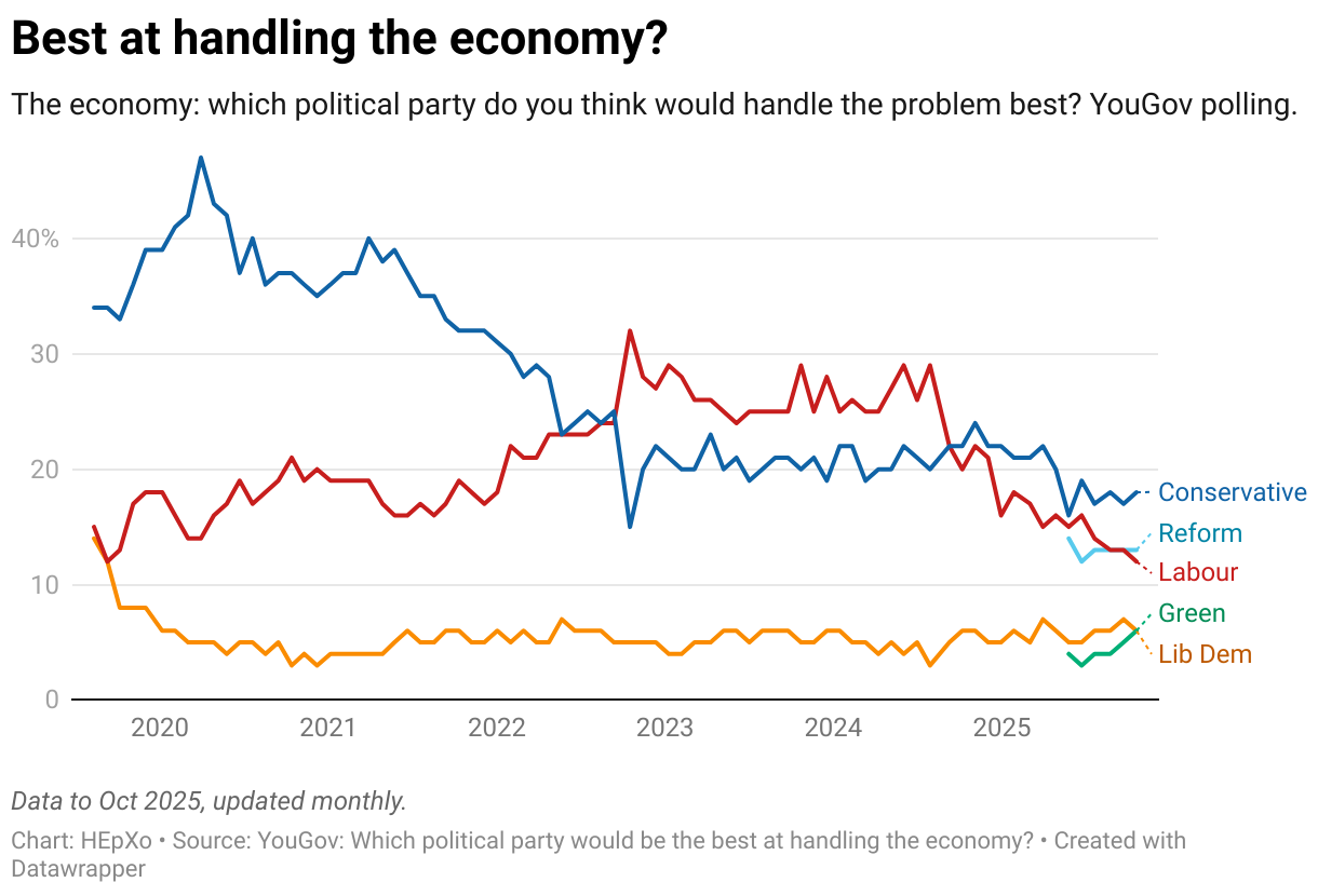 The economy: which political party do you think would handle the problem best? YouGov polling.