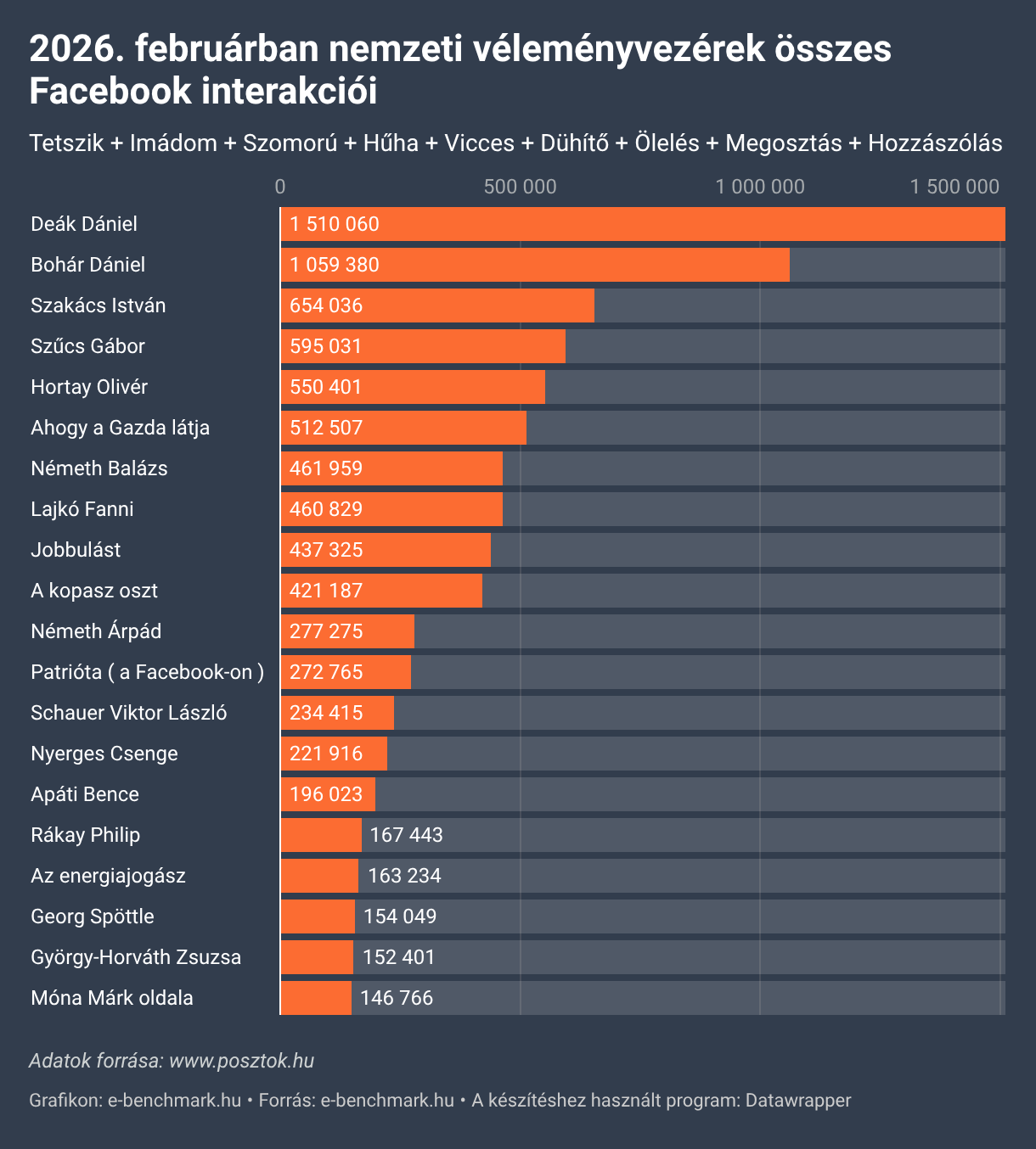 2026. februárban nemzeti véleményvezérek összes Facebook interakciói