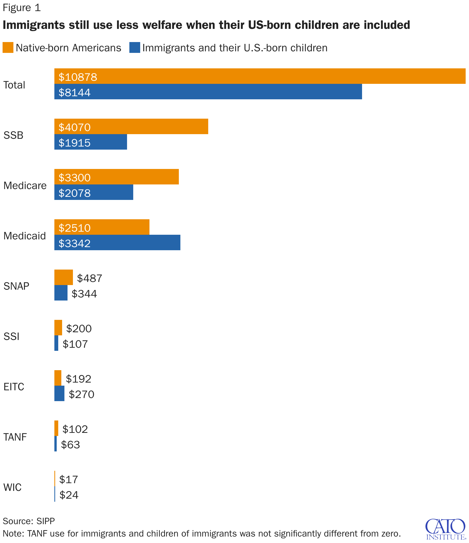 Immigrants still use less welfare when their US-born children are included