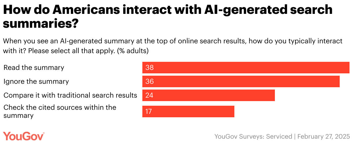 When you see an AI-generated summary at the top of online search results, how do you typically interact with it? Please select all that apply. (% adults)